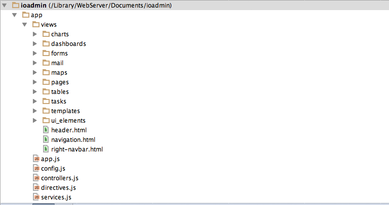 It also contains a "views" folder. This folder contains the templates for each view in the app. You can check which view corresponds to each path by looking at the app .config method in the app.js file.