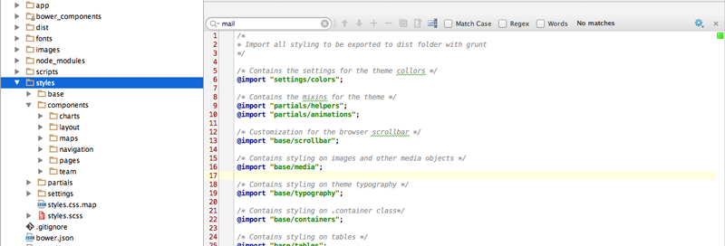All these files are compiled into the styles.scss file inside the styles folder and copied with grunt into the dist folder (minimized application).